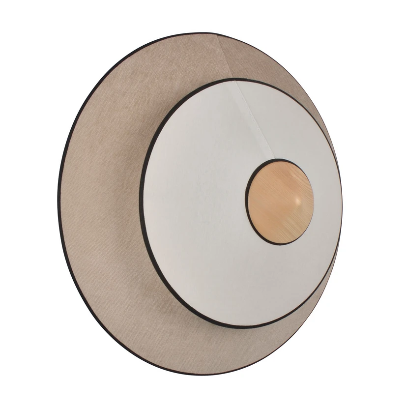 Nástenné svietidlo Cymbal S Neutral je malý kúsok hudby v podobe lampy. Kruhové prvky, ktoré tvoria nástennú lampu Cymbal, sú vyrobené zo zamatu, konope a dreva. Výsledkom je krásny matný a prirodzený výraz s mäkkým a útulným svetelným efektom.