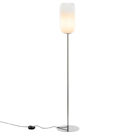 Stojacia lampa Gople White je vzrušujúca a inovatívna lampa. Nádherné sklo fúkané ústami je vyrobené starobylou benátskou technikou, ktorá postupne mení farbu skla. Každá lampa má preto jedinečnú farbu a môže sa mierne líšiť tvarom. Jednoduchý tvar lampy zvýrazňuje krásnu hru farieb a inovatívnu povrchovú úpravu.