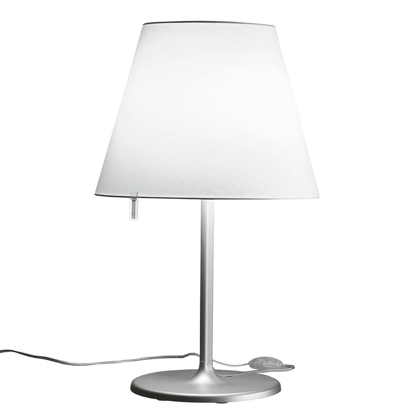 Lakovaná základňa zo zliatiny zinku, lakovaná hliníková tyč a biely saténový látkový difúzor na plastovom ráme znie jednoducho - ale nenechajte sa oklamať.