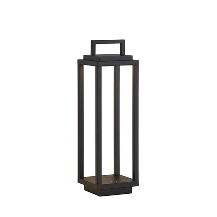Prenosná vonkajšia lampa Mirina Black očarí diváka svojím jednoduchým a elegantným dizajnom svietidla. Lampa je bezdrôtová, takže si jej svetlo môžete užívať, nech ste kdekoľvek. Súčasťou balenia je kábel USB na jednoduché nabíjanie. Nostalgický dizajn má obdĺžnikovú konštrukciu s elegantným malým držadlom v hornej časti, takže lampu možno prenášať. Tyčová konštrukcia dodáva lampe otvorený vzhľad a umožňuje, aby svetlo zo zabudovaného modulu LED namontovaného pod hornou časťou svietidla svietilo do všetkých strán v jasnej žiari. Strategické umiestnenie svetelného zdroja zabraňuje oslňovaniu svetlom. Namiesto toho je nasmerované smerom nadol v mäkkej zári s teplým bielym farebným tónom.
