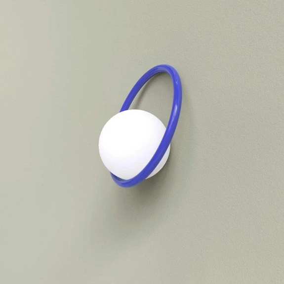 Svietidlo Hula Hoop Wall Light HW Electric Blue stelesňuje hravý, farebný štýl, ktorý charakterizuje švédsku dizajnérsku spoločnosť Swedish Ninja. Mozgom za týmto krásnym dizajnom je Stefan Börselius, ktorý navrhol svietidlo inšpirované klasickým hula hoop obručou, ktorá je pre mnohých ľudí súčasťou spomienok na detstvo. Okrúhly tvar sa opakuje ako v pestrofarebnej obruči, tak aj v bielom guľovom sklenenom tienidle, ktoré je umiestnené mimo stredu a dodáva svietidlu moderný dizajnový vzhľad.