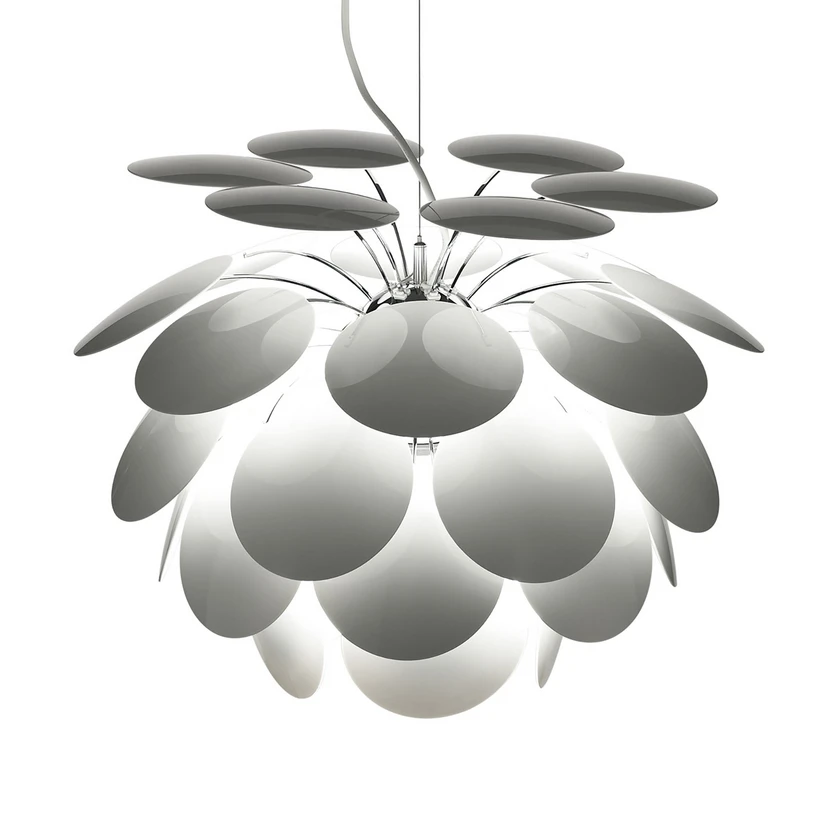 Závesné svietidlo MARSET Discocó zaujme svojím výnimočným dizajnom a harmonickou kombináciou ABS plastu a kovu. Lampa bola navrhnutá Christopheom Mathieuom a spája estetickú rafinovanosť s funkčnou všestrannosťou. Jej biela farba zaisťuje nadčasový vzhľad, ktorý sa bezproblémovo začlení do rôznych interiérových konceptov, ako sú obývačka, spálňa alebo jedáleň.