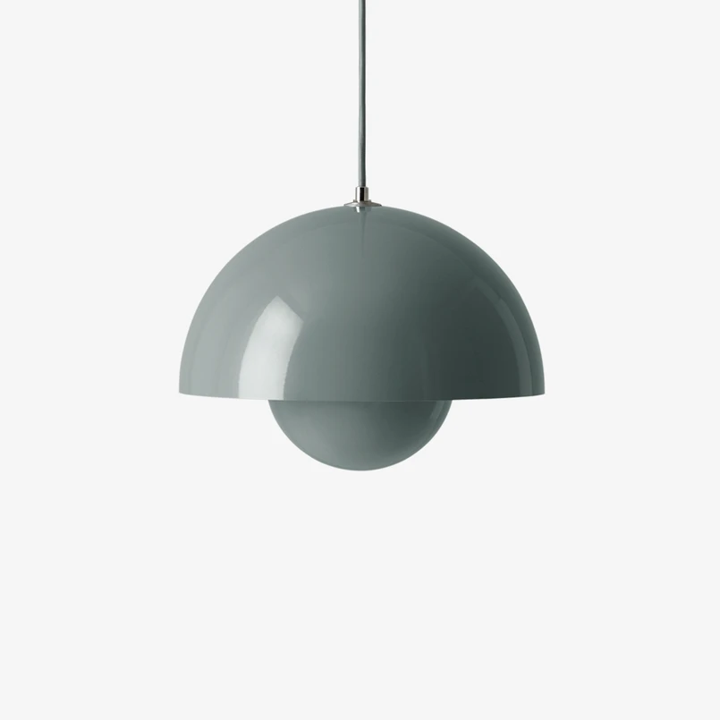 Závesné svietidlo Flowerpot VP2 Stone Blue je súčasťou pôsobivej série Flowerpot, ktorú po prvýkrát predstavil v roku 1968 priekopnícky dánsky dizajnér Verner Panton, inšpirovaný revolúciou Flower Power v 60. a 70. rokoch. Od 60. rokov sa séria Flowerpot výrazne rozrástla a dnes pozostáva z rôznych stolových lamp s kovovou základňou aj bez nej, závesných svietidiel v rôznych veľkostiach, nástenných svetiel a prenosných stolových lamp, ktoré sa všetky vyznačujú jedinečným a nezameniteľným tienidlom na lampu. Tienidlo na lampu pozostáva z dvoch protiľahlých kruhov, pričom priemer hornej gule je presne dvojnásobok priemeru spodnej gule, čím sú dokonale vyvážené.