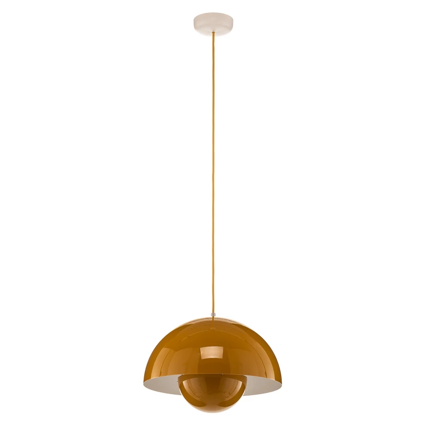 Závesné svietidlo Flowerpot VP7 Mustard je súčasťou pôsobivej série Flowerpot, ktorú po prvýkrát predstavil v roku 1968 priekopnícky dánsky dizajnér Verner Panton, inšpirovaný revolúciou Flower Power v 60. a 70. rokoch. Od 60. rokov sa séria Flowerpot výrazne rozrástla a dnes pozostáva z rôznych stolových lamp s kovovou základňou aj bez nej, závesných svietidiel v rôznych veľkostiach, nástenných svetiel a prenosných stolových lamp, ktoré sa všetky vyznačujú jedinečným a nezameniteľným tienidlom na lampu. Tienidlo na lampu pozostáva z dvoch protiľahlých kruhov, pričom priemer hornej gule je presne dvojnásobok priemeru spodnej gule, čím sú dokonale vyvážené.