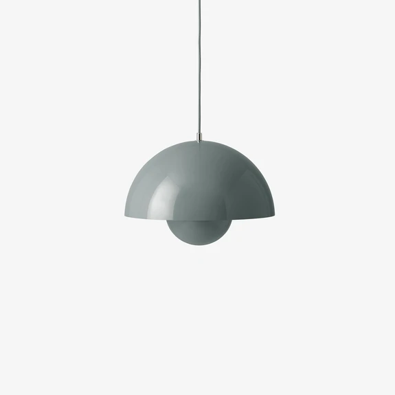 Závesné svietidlo Flowerpot VP7 Stone Blue je súčasťou impozantnej série Flowerpot, ktorú po prvýkrát predstavil v roku 1968 priekopnícky dánsky dizajnér Verner Panton, inšpirovaný revolúciou Flower Power v 60. a 70. rokoch. Od 60. rokov sa séria Flowerpot výrazne rozrástla a dnes pozostáva z rôznych stolových lamp s kovovou základňou alebo bez nej, závesných svietidiel v rôznych veľkostiach, nástenných svetiel a prenosných stolových lamp, ktoré sa všetky vyznačujú jedinečným a nezameniteľným tienidlom na lampu. Tienidlo na lampu pozostáva z dvoch protiľahlých kruhov, pričom priemer hornej gule je presne dvojnásobok priemeru spodnej gule, čím sú dokonale vyvážené.